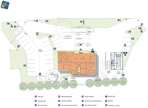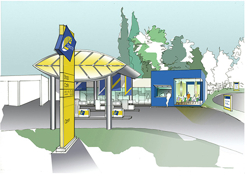 The concept addressed the unique requirements of a petrol station and the retail needs of a fast food outlet. The Branding Concept incorporated the building design with the new brand design provided an integrated corporate logo together with the other branding material such as signage display systems, uniforms and stationery.