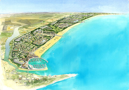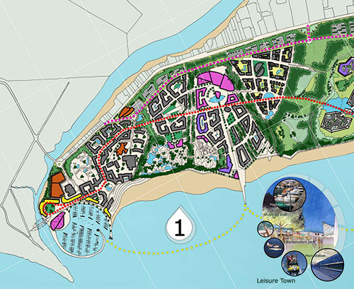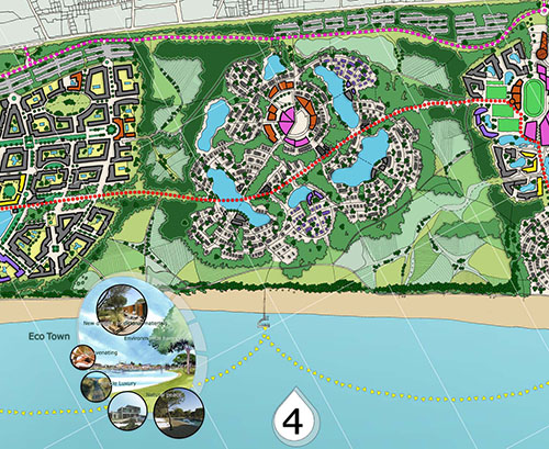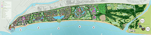 The project was one of 8 finalists shortlisted from an international open competition to design a sustainable 13km - 30,000 bed, beach front resort development. This proposal created five distinct communities with independent identities; the leisure town adjacent to the marina forming the lively leisure & entertainment centre, the walled town creating a peaceful up-market environment with exclusive spas, health & well-being, the civic centre, the eco town, a less formal collection of villas and apartments dispersed within the natural landscape, the sports & recreation town and the restaurant river resort, intentionally less accessible to ensure the local wildlife was left undisturbed. The project was delivered by BCIdesign’s directors in Burrows Cave International.