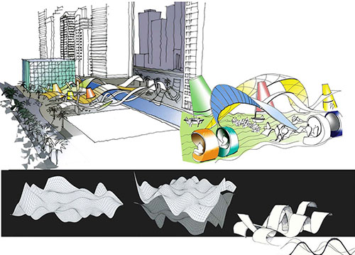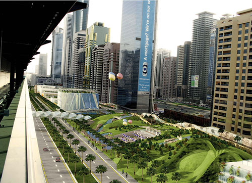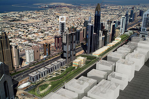 Dubai International Financial Centre brief asked for a conceptual urban planning scheme of DIFC Boulevard, the western road of DIFC District and shape its boundary with Sheikh Zayed Road towers.