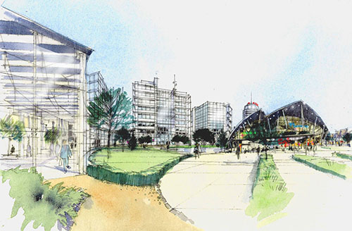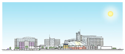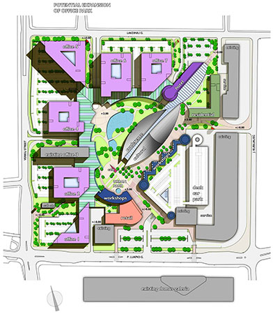 A masterplan redevelopment of a 14ha site occupying a 370m square city block on the northern edge of the city of Vilnius, on the site of a former military camp where various commercial uses have developed in some of the original buildings and in new buildings with street frontage around the perimeter. The objective was to arrive at a phased Masterplan that would extend the retail profile that is already established and also introduce a major office park with associated entertainment facilities which would become an attraction within the city and extend the occupation of the site into the evening and beyond. The project was delivered by BCIdesign’s directors in Burrows Cave International.